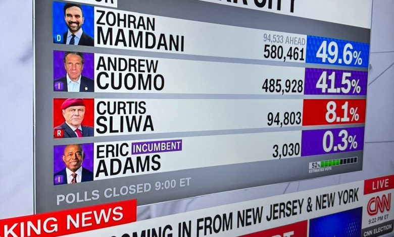 وأظهرت التقديرات الأولية أن المرشح الديمقراطي لمنصب عمدة نيويورك حصل على 50.4% من الأصوات مقابل 41.3 لمنافسه الجمهوري.