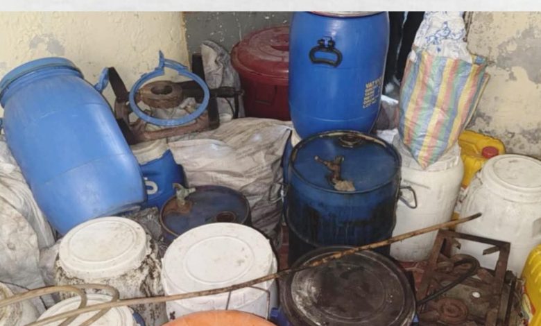 واثناء البحث مع المشتبه بهم تم تحديد مكان المنزل الذي يصنع فيه السمسم، حيث عثر فيه على مصنع متكامل لهذا المشروب يحتوي على عدد 20 برميل سعة 80 لتر و قنينات غاز بوتان لإعداد المشروب ومروحة هوائية لاخفاء روائح الخمور، بالاضافة الى عدد كبير من الحاويات مختلفة الاحجام بعضها مليء بالمادة المسكرة، وقد تم حجز المواد والادوات المستعملة ووضع المشتبه بهم قيد الحراسة النظرية، وبعد اكمال البحث تمت احالتهم الى النيابة حيث تم ايداعهم السجن.