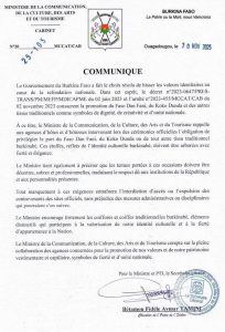 وجه وزير الثقافة والاتصال والفنون والسياحة البوركينابي،مذكرة شفهية،إلى الوكالة التي تقدم مضيفين ومضيفات،لتنظيم الأنشطة الرسمية،أبلغهم من خلالها،بفرض الالتزام بالملابس التقليدية المحتشمة،التي تليق باحترام الدولة.