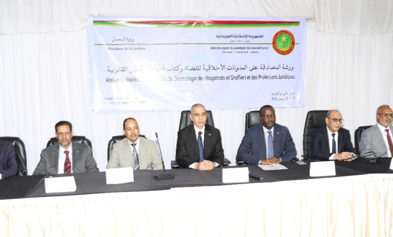 أشرف وزير العدل السيد محمد ولد اسويدات صباح اليوم الخميس بانواكشوط، على إطلاق فعاليات ورشة المصادقة على المدونات الأخلاقية للقضاة وكتاب الضبط والمهن القانونية.